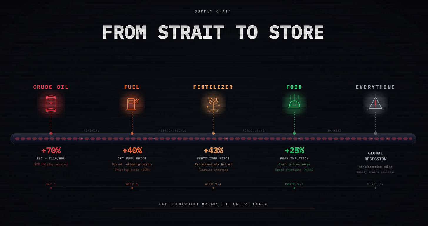 People don't realize how many economic elements are tied to oil from the production of goods to the movement of goods and economic variables as well such as inflation. If those oil prices go up most likely food prices and the price of goods are going up too.