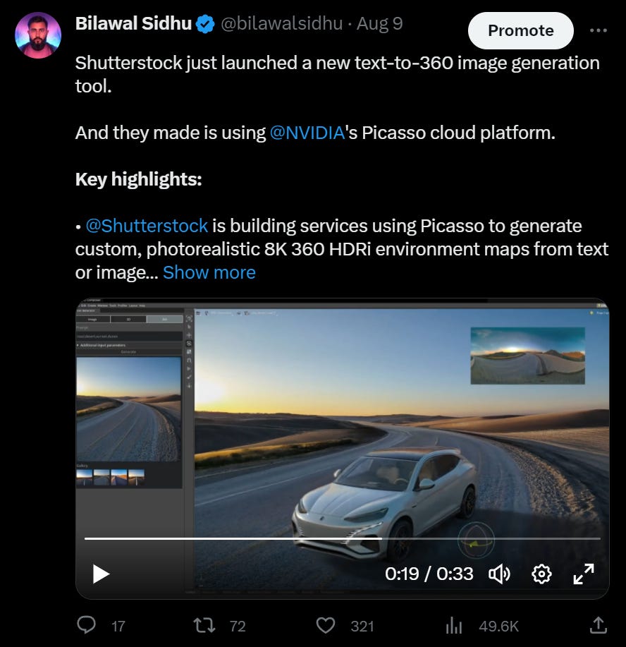 3/ Shutterstock Launches Innovative Text-to-360 Image Generation Tool Using NVIDIA's Picasso Cloud Platform:
