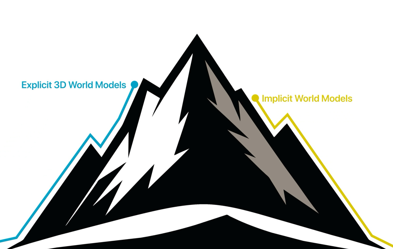 The implicit approach says screw it, scale the neural network. More data, more compute, and out comes something that eats the game engine for lunch. And Genie 3 is the strongest proof point yet: Google went from training on gameplay footage to a chunk of YouTube, and it just worked. Emergent physics, lighting, and spatial consistency that Genie 2 couldn’t touch.